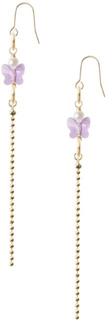 ポテト型の淡水パールに約8mmのバイオレット蝶スワロフスキーが付いたピアスです。