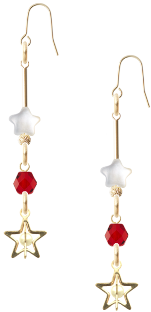 ホワイトシェル、チェコビーズシャムルビー、立体的なスターが付いたピアスです。