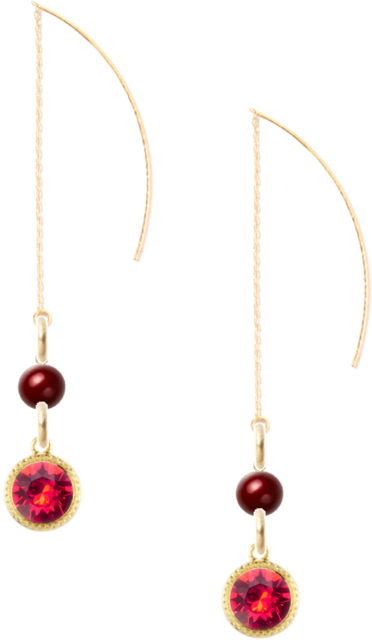 アメリカンチェリー色の樹脂パールとラウンド型ライトシャムスワロフスキーが付いたピアスです。