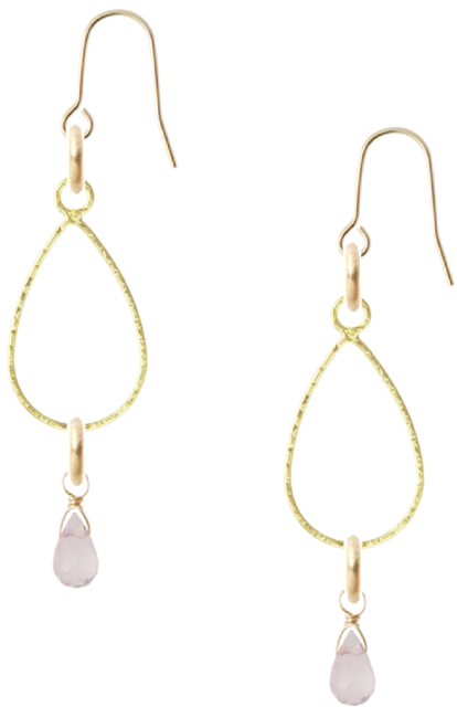 しずく型フープにドロップ型ローズクオーツがついたピアスです。