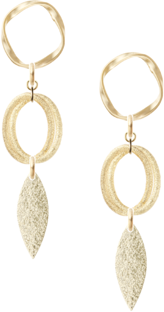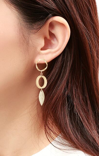 メビウスの輪のようにネジレたデザインのピアスにダブルリングと葉の様なメタルが付いています。
